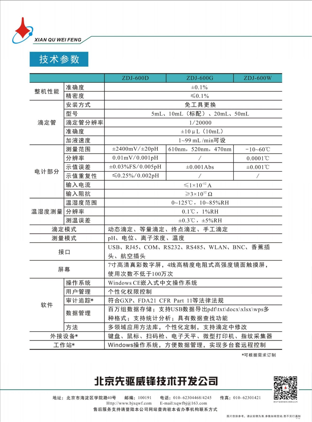 15、选配相应配件,可升级程序进行光度滴定、温度滴定、永停滴定、水分滴定;